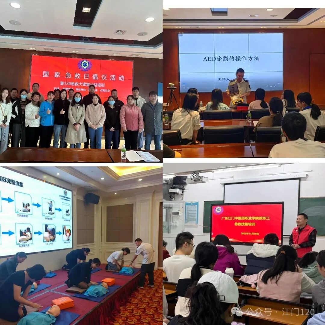 深耕急救普及,筑牢安全屏障。为普及全民应急救护知识,使公众掌握基本必备的心肺复苏等应急自救互救知识与技能,2025年开展应急救护培训16场,共培训5600余人。其中国家急救日倡议活动暨120急救大课堂公益培训1场,入学新生急救培训1场,全市安全生产宣传咨询日活动防溺水急救培训1场,协助江门马拉松医疗保障及骑行救护队培训2场,发证急救技能培训班11场。
